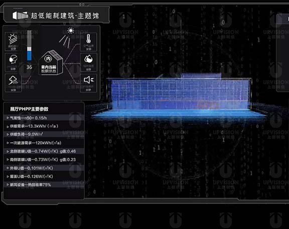 本案例是数据可视化典型项目展示,位于雄安大区,是龙湖地产高碑店超低能耗展馆的多功能厅的主屏幕,画面上所有的数据